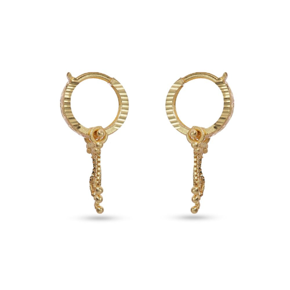 Elevate your look with the Golden Tassel Hoop Earrings — a bold fusion of traditional charm and contemporary elegance. Designed with textured gold hoops and delicate dangling chain tassels, these earrings bring graceful movement and statement shine to every outfit.