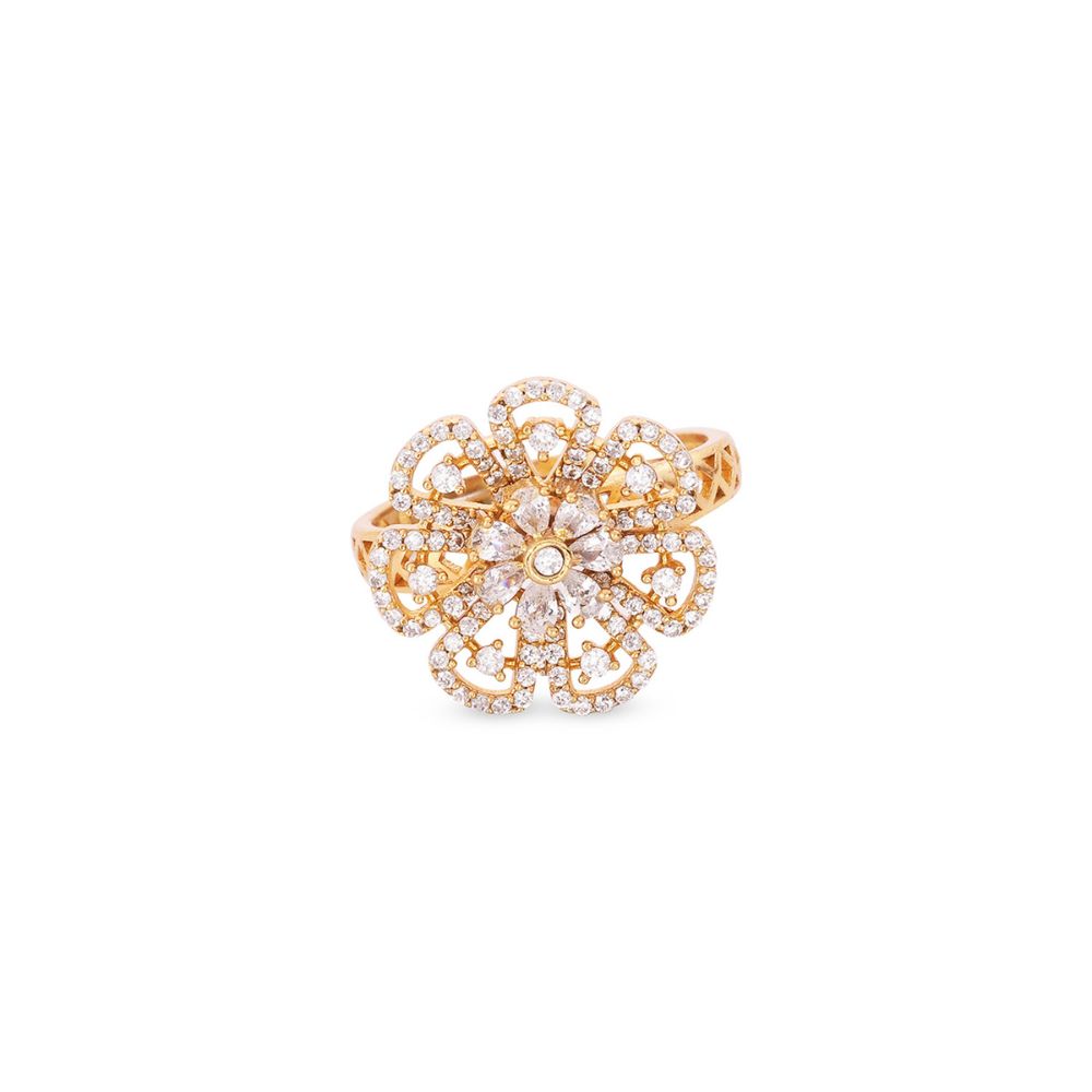 The Imperial Crystal Blossom Ring is a breathtaking statement piece inspired by the beauty of a fully bloomed flower. Designed with intricate petal-shaped curves outlined in shimmering crystals and a radiant center cluster, this ring captures light from every angle with luxurious brilliance.