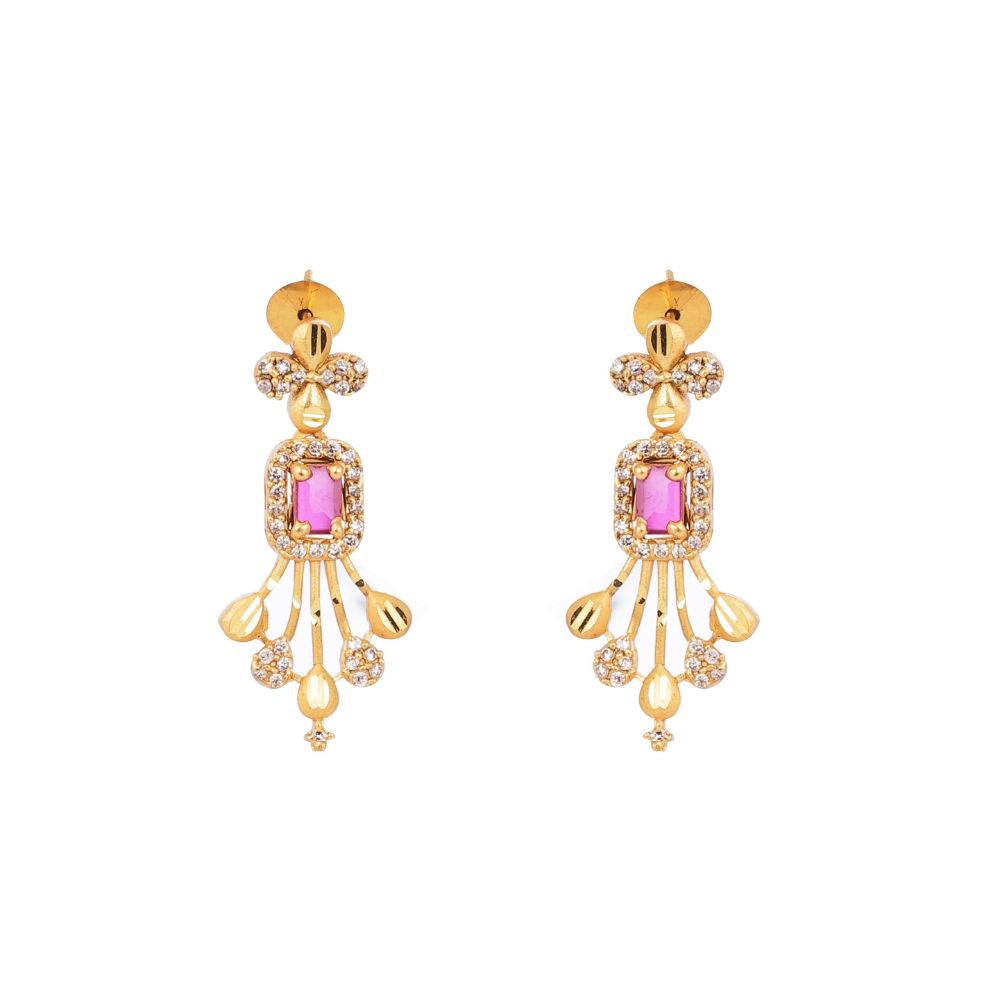 Gracefully designed with a regal touch, the Royal Ruby Cascade Necklace Set showcases a stunning blend of gold brilliance, sparkling stones, and rich ruby accents. The elegant drop pattern with intricate detailing adds timeless charm, making it a perfect statement piece for weddings, festive occasions, and grand celebrations.