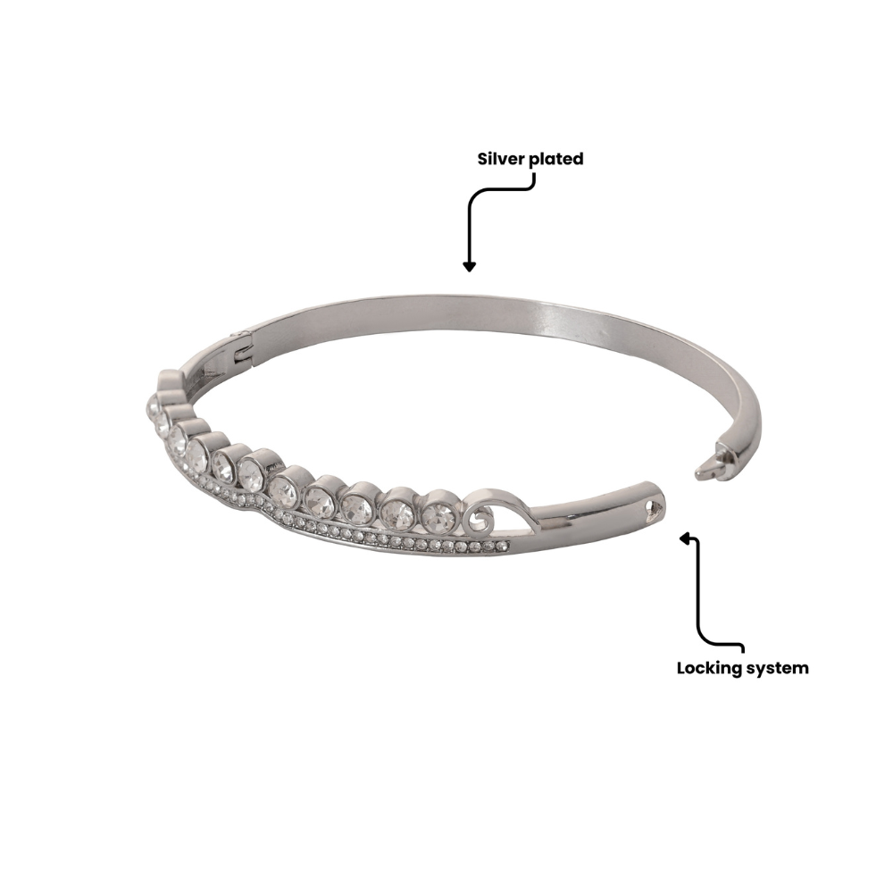 Elegant, minimal, and gracefully timeless — the Silver Radiant Bezel-Set Bracelet is designed for women who adore subtle sparkle with everyday sophistication. Featuring a row of bezel-set stones and a sleek silver finish, it adds refined charm to any look.